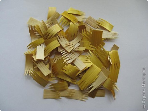 4. Нарежем соломенные ленты на части длинной 1,5-2см.